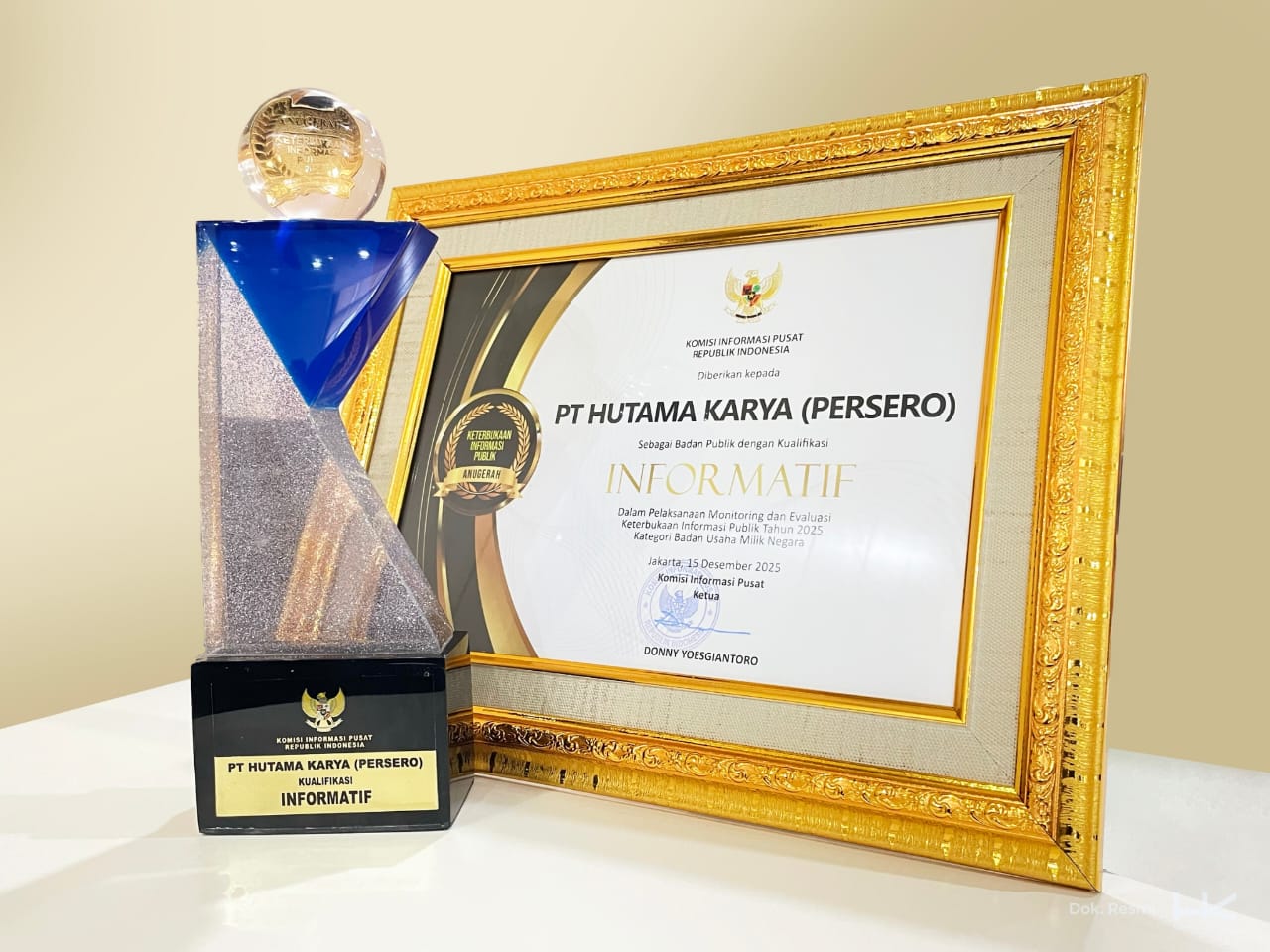 JAKARTA – PT Hutama Karya (Persero) (Hutama Karya) kembali meraih predikat “Informatif” pada ajang Anugerah Keterbukaan Informasi Publik (KIP) Tahun 2025 untuk kategori Badan Usaha Milik Negara (BUMN) yang diselenggarakan di Bidakara Hotel, Jakarta, pada pertengahan Desember kemarin. Kegiatan ini juga dirangkaikan dengan pekuncuran Indeks Keterbukaan Informasi Publik (IKIP) 2025, sebagai bagian dari upaya penguatan ekosistem keterbukaan informasi publik secara nasional.