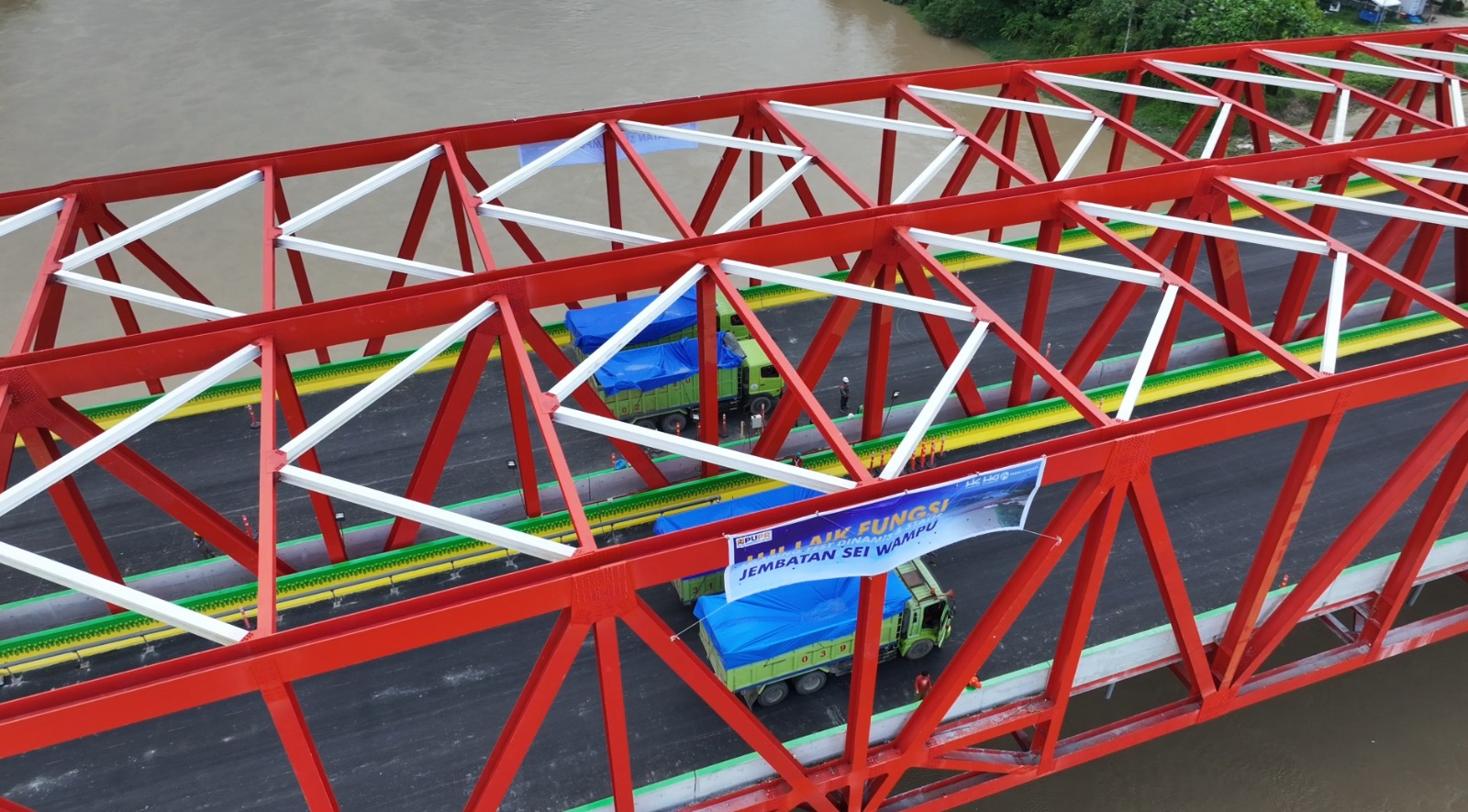 SUMATRA UTARA – PT Hutama Karya Infrastruktur (HKI), anak usaha PT Hutama Karya (Persero) telah menyelesaikan konstruksi Jembatan Sei Wampu pada Jalan Tol Binjai – Pangkalan Brandan Ruas Binjai – Langsa. Jembatan ini juga telah dilakukan Uji Laik Fungsi (ULF) pada Jumat (18/08) hingga Minggu (20/08). Pelaksanaan ULF ini dilakukan oleh Kementerian PUPR Direktorat Jenderal Bina Marga Direktorat Pembangunan Jembatan Balai Jembatan.