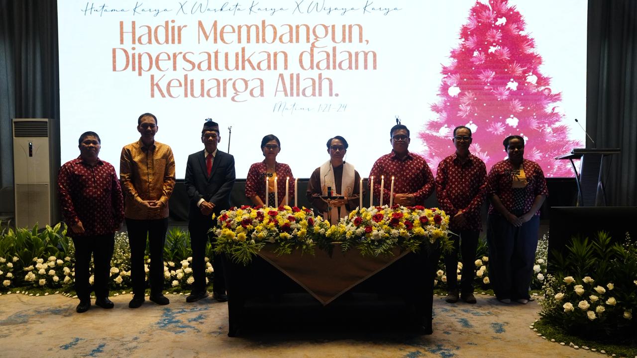 JAKARTA — PT Hutama Karya (Persero) (Hutama Karya) bersama PT Waskita Karya (Persero) Tbk dan PT Wijaya Karya (Persero) Tbk menyelenggarakan Ibadah dan Perayaan Natal Bersama BUMN Karya Tahun 2025 sebagai wujud kolaborasi lintas perusahaan yang pertama kali digelar secara bersama. Kegiatan ini berlangsung secara hybrid di HK Tower, Jakarta, Kamis (15/1), serta diikuti secara daring melalui Zoom. Perayaan Natal tahun ini mengusung tema “Hadir Membangun, Dipersatukan dalam Keluarga Allah” yang merefleksikan semangat kebersamaan, persaudaraan, dan pengabdian dalam setiap peran dan karya yang dijalani insan BUMN Karya.