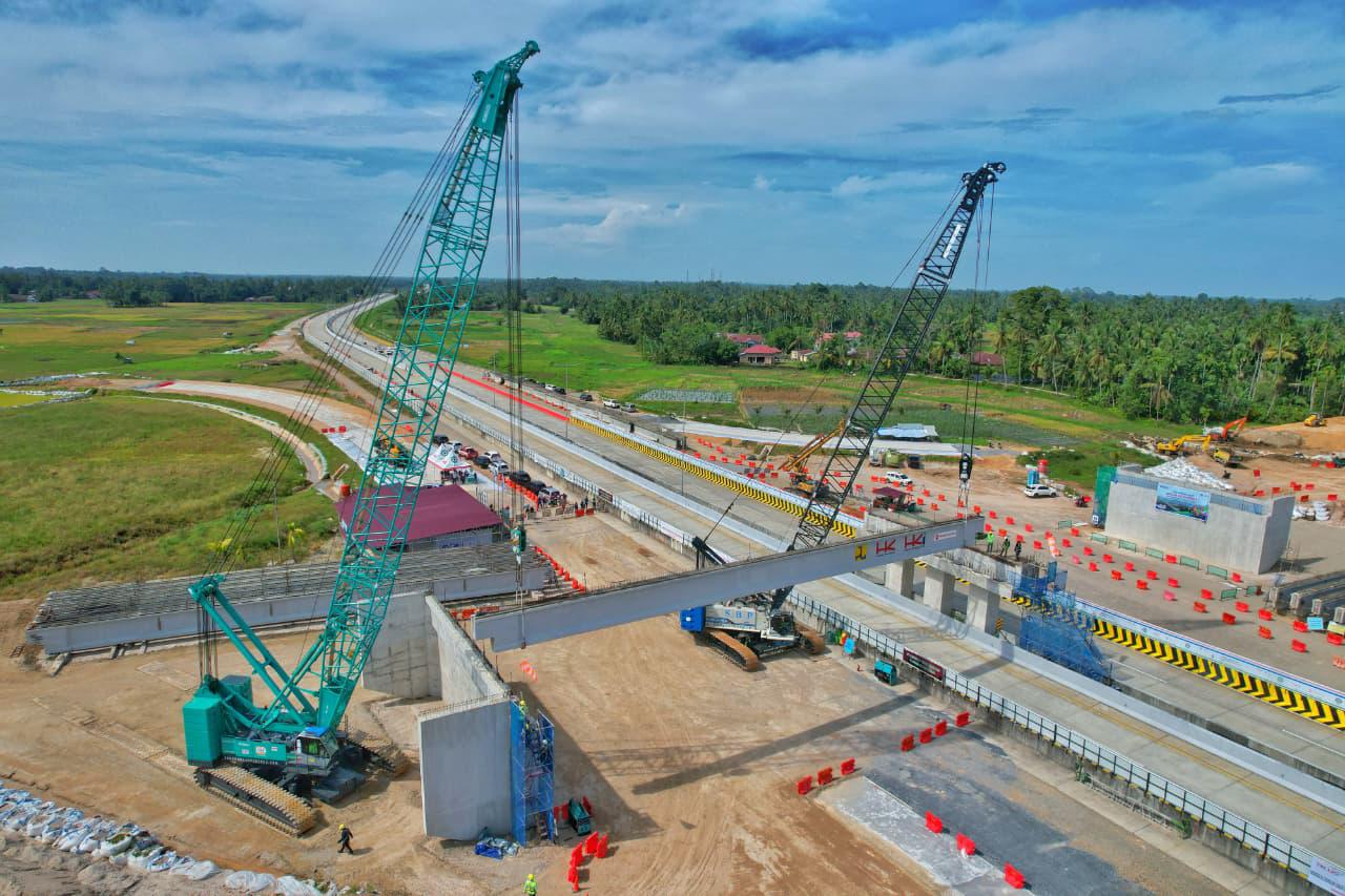 PEMASANGAN GIRDER INTERCHANGE LUBUK ALUNG, TOL PADANG–SICINCIN TERAPKAN REKAYASA LALU LINTAS